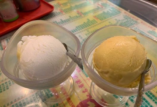 这家在上下九步行街附近 逛累了正好可以过去吃个冰淇淋甜品休息休息 这家也算是广州当地的老字号甜品店啦 比较出名的是他们家的雪糕 雪糕的口味挺多的 有榴莲 香芒和椰子 还有各种绿豆冰红豆冰和其他糖水以及简餐 「榴莲雪糕」 榴莲味没我想象中的那么浓郁 其实吃上去也就是普通的冰淇淋球 味道中规中矩 「绿豆冰」 就是杯装的绿豆汤 甜度适中 喝着口感很清凉 降温解渴 绿豆制品一生爱