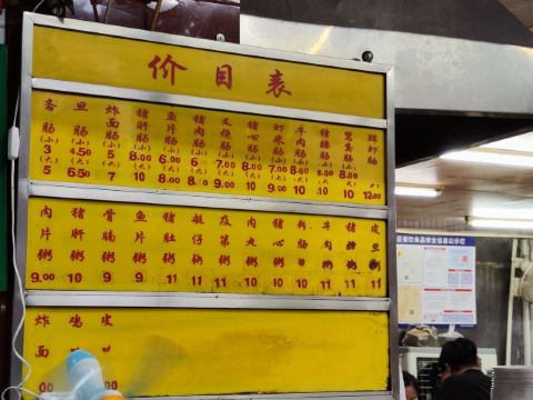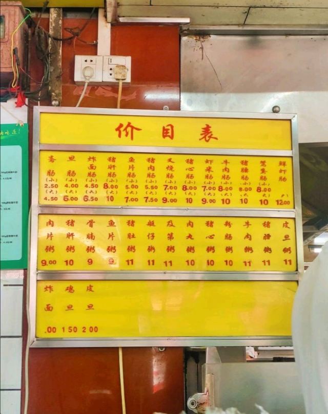 鲜虾肠,牛肉粥,猪肝肠,艇仔粥,猪肝粥,及第粥,叉烧肠,瘦肉粥,肉片肠,虾米肠,骨腩粥,猪心肠,猪肉肠,鸡蛋肠,猪润粥,皮蛋牛肉粥,大牛,辣酱
