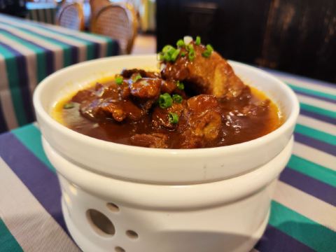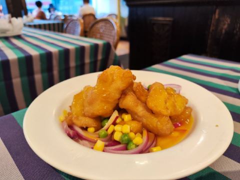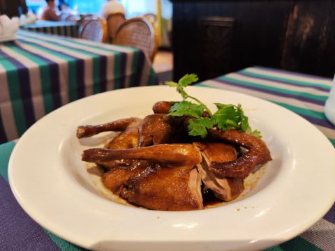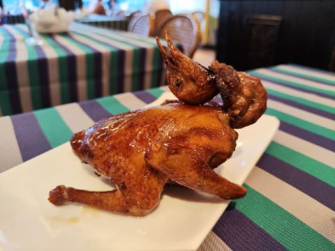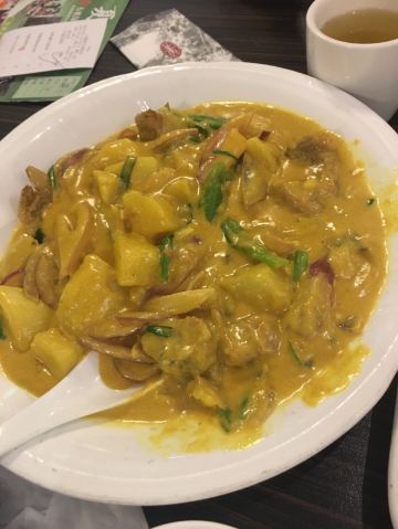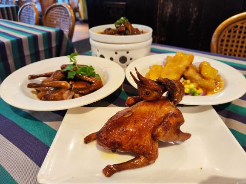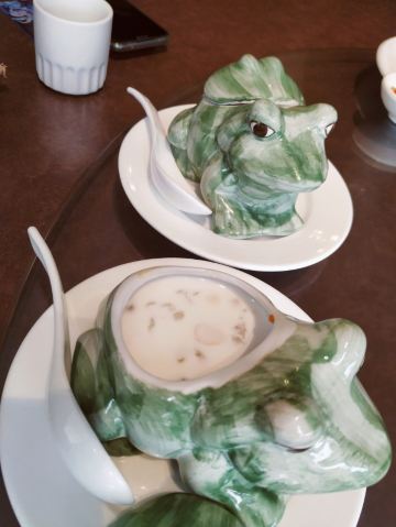 沙面超人气餐厅,在沙面有两家店,这家在网球场边。既有泰国菜又有粤菜,菜式种类很多,味道也十分不错。乳鸽是一定要点的,口味有烤的和红烧的两种,经常有特价,喜欢吃乳鸽的可以两种口味都来一只。吃过饭后,可以点些甜品。椰汁木瓜炖雪蛤口感也很清新,放在蛤蟆碗里感觉萌萌的。