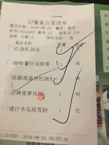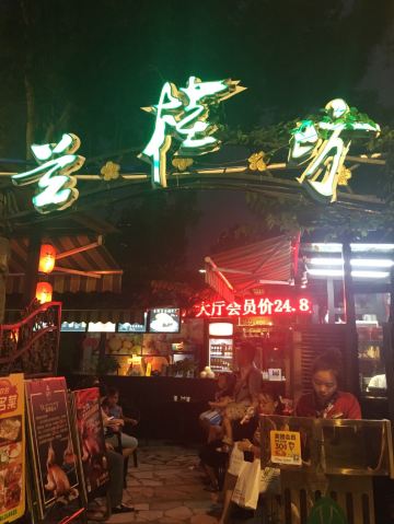 芳芳Flora兰桂坊(沙面总店),我们来过好多次了,这次带上我妈和我弟他们一起来。工作日的中午时间,客人还是不少的。 (1)炭烧猪颈肉,52元。猪颈肉比较偏肥,口感不怎么样。感觉还不如一般小店做得好。 (2)咖喱牛筋腩,68元。咖喱好好味道,牛筋腩挺入味的。不错。 (3)椒干陈醋炒富贵菜,28元。富贵菜其实是包菜,炒得挺爽脆的,有些沾着辣椒的就太辣了。 (4)老式炒牛河,38元。牛河一般般,好像火候不大够。牛肉比较少。 (5)烟熏清香乳鸽,70元两只。38元一只,两只就70元,帮我们点菜的店员说这个是新推出的,荔枝柴炭烧乳鸽,建议我们试试,我们就点了。吃起来觉得远远不够红烧乳鸽好吃,这种烟熏的味道大家不大喜欢,而且皮和搜都有点韧韧的,没有香脆口感。 (6)椰汁木瓜炖雪蛤,21.8元/位。盛器是绿色青蛙模样的,挺可爱的。挺香甜的,推荐! (7)养生滋补鸽皇饭,42元。一整个小电饭煲地端上来,热腾腾的,不错。挺美味的鸽子饭,鸽子肉比较多,好吃。