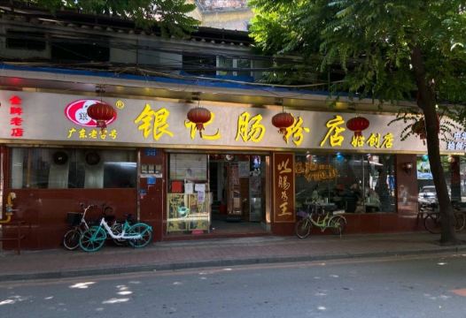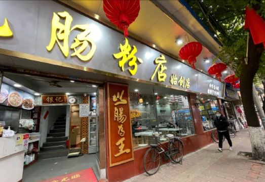 Yin Ji ChangFen Dian (WenChang)如果是在广州的老城区,去任何一家还在开着的肠粉店,应该都是好吃的。踩着清晨闹哄哄的市声,转过几个街角,走进熟悉的肠粉店。点一碟鸳鸯肠,配一碗艇仔粥,拿号坐下,等待粉白油亮的肠粉,冒着香气端上桌。很多广州人的一天,大概就是这样开始的。每家肠粉店,都值得试试。因此,推荐一家在广州各处比较容易碰得到的肠粉店连锁——银记肠粉。银记肠粉店创建于上世纪50年代,多年来,凭借质优味美的传统布拉肠粉驰名于省港澳,其肠粉以“粉薄、味鲜、爽滑、口感独特”而赢得了“白如玉,薄如纸,爽滑微韧,味道鲜美”的评价。广州人早餐和宵夜都喜欢吃肠粉,早在五、六十年代,“银记肠粉”就名扬广州西关地区。银记与时俱进而不断创新,如今银记肠粉已经成为深受本地人喜爱的连锁店品牌,在省港澳地区都有较高的知名度和良好的声誉,几乎成为广州传统布拉肠粉的代名词。香港四大才子之一和美食家的蔡澜先生,也曾为银记赠字“此肠为王”。