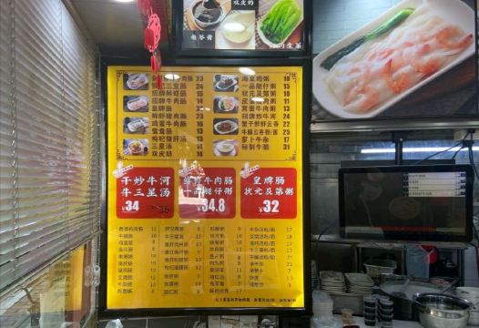 广州最有名的肠粉店,1958年就开设的小店,现在已经有了多家分店。墙上可以看到蔡澜亲题的”以肠为王“,可见其肠粉有多赞。肠粉采用的是最传统的布拉方法,外层薄韧,口感嫩滑,不会一夹就散。馅料选择也很多,最受好评和得奖最多的是牛肉和猪肉肠粉,也可以选择双拼都试一下。
