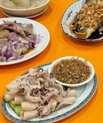 白灼鱿鱼,番茄蛋牛肉,鹅肝酱芥蓝,绿豆沙,花肉煲,白灼吊片,豉油糖煎黄花鱼,葱油鸡,咸蛋饭,红豆沙,葱茸饭,豉油糖炸黄花鱼,五柳蛋,腰润煲,老火汤,啫啫煲,榄角鱼嘴