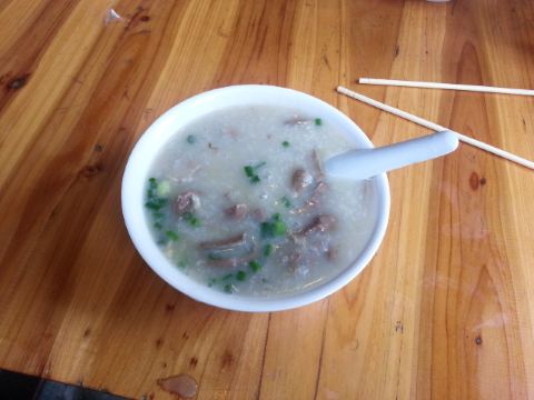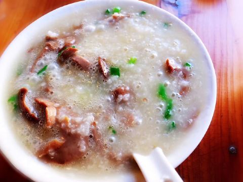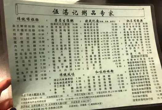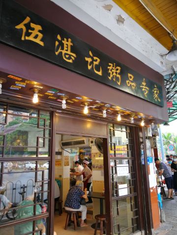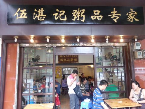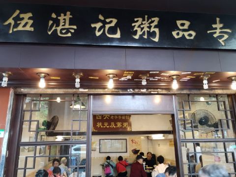 Wuzhanji · guangzhoulaozihao (longjinzhonglu)伍湛记是广州的老字号,以传统的三元及第粥(简称及第粥)最为有名。传说,清朝时广东的状元林召棠爱吃用猪肝、猪腰子、猪肚熬制的粥。一日,林状元在家食粥时,告老还乡的御史前来拜访,林状元便以此粥招待。御史食后觉得美味无比,问其粥名,林状元想起御史家公子正在备考,便称是“三元及第粥”,以粥中的猪肝、猪腰、猪肚代指状元、榜眼、探花三元及第。老御史回府后,同法炮制“三元及第粥”给爱子食用。后来御史家公子果然高中状元。从此“三元及第粥”声名大振。 这伍湛记的及第粥在广州是最为有名的,品尝下来感觉不错,粥白滑,加的料似乎不止“三元”,熬得比较酥软,一般人吃不出内脏的腥味,如果对此味敏感,可以加一点胡椒粉,就十分鲜美了!