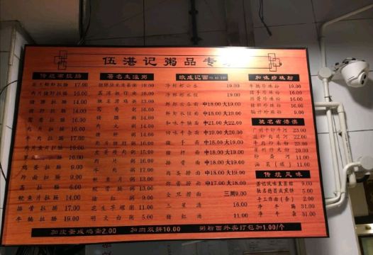 听足音伍湛记是广州的老字号,以传统的三元及第粥(简称及第粥)最为有名。传说,清朝时广东的状元林召棠爱吃用猪肝、猪腰子、猪肚熬制的粥。一日,林状元在家食粥时,告老还乡的御史前来拜访,林状元便以此粥招待。御史食后觉得美味无比,问其粥名,林状元想起御史家公子正在备考,便称是“三元及第粥”,以粥中的猪肝、猪腰、猪肚代指状元、榜眼、探花三元及第。老御史回府后,同法炮制“三元及第粥”给爱子食用。后来御史家公子果然高中状元。从此“三元及第粥”声名大振。 这伍湛记的及第粥在广州是最为有名的,品尝下来感觉不错,粥白滑,加的料似乎不止“三元”,熬得比较酥软,一般人吃不出内脏的腥味,如果对此味敏感,可以加一点胡椒粉,就十分鲜美了!