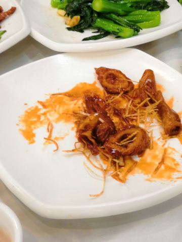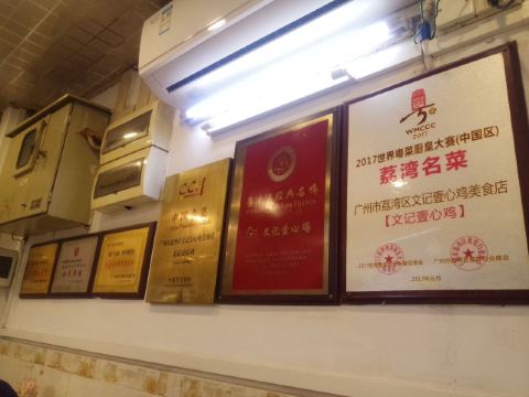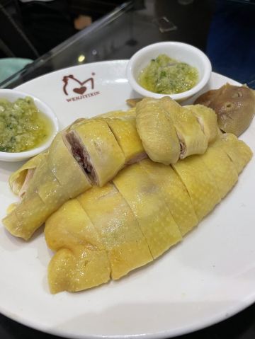 文记壹心鸡的招牌菜一心鸡最早为清平饭店所创,是用一种特制卤水做出的白切鸡,皮爽肉滑,非常入味。除此之外,这里还有秘制红枣骨、姜葱捞鸡肾等美食。