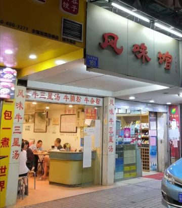 风味馆是广东风味小吃店,以陈村粉等广州地方特色风味为主,其中牛腩粉最为地道,吃早餐和简餐的好去处。