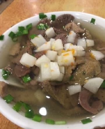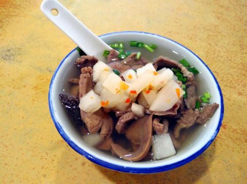 风味馆老字号,店铺装修环境很一般,就是老式的街坊店铺。最出名的就是牛三星汤,每次来这里都会必点牛三星汤和陈村粉。而家牛三星汤的价钱都升了,分大碗和小碗。其实感觉大碗的都唔算好大,不过汤底很好,很浓郁,而牛三星也很爽口。另外陈村粉也是比较值得推荐的,配上腩汁,薄、爽、滑、软。一碗汤配上一碟粉就已经足够一餐了。