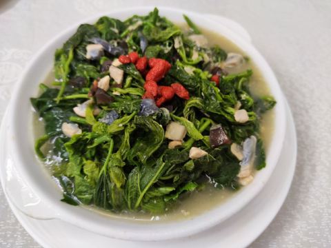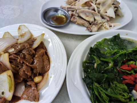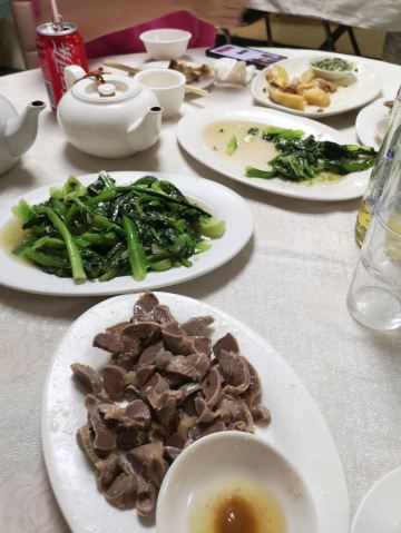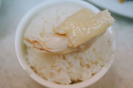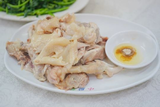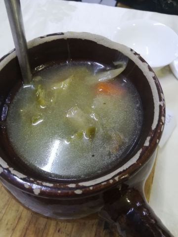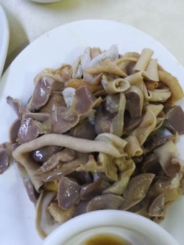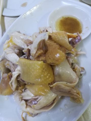 老火例汤,例汤都俾大家推荐?有咩过人之处啊,今期煲既系霸王花猪骨汤,一煲仔,几多剑花红萝卜,可以当青菜食,仲有2旧脊骨,汤够浓,老人家话有落师傅,不过煲得火候够,所以最后刮晒煲底啦。手撕鸡同鸡什都咸,要煲汤系啱既。 手撕本地鸡,等左都20分钟!店家话落既单排晒队,要等。最后走个阵见到烧腊档就得一个人撕鸡,仲要悠闲甘黎撕。要既系贵个种本地鸡,皮爽肉有嚼头,鸡肉系唔错,招牌靠得住,就系咸d咯。如果多人既话要半只扇鸡肉质更实净啊。 盐焗鸡什,小肠生肠润肾,肾一d都唔硬,就系个别无刮干净,虽然鸡内金都系入药,但系我腌尖d。两个肉都系咸咸,要白饭送,3蚊鸡一细碗,咸口既2碗白饭都食得。