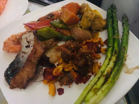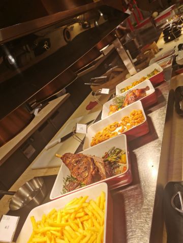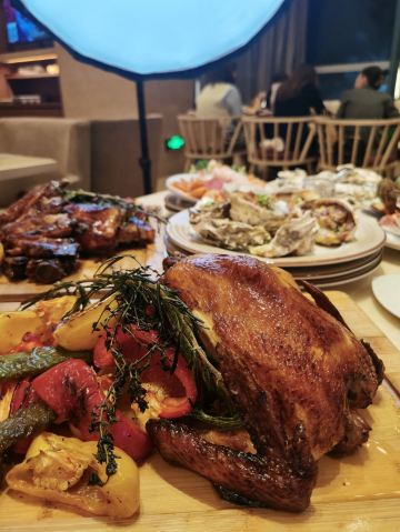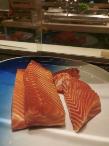 很好的一次自助餐体验😘从刺身到沙拉🥗到扒类,到甜点,都是我和老公的最爱。餐厅的小姐姐们都很给力,收拾很快,而且服务态度非常好,生蚝都是现开的,牛扒和羊排都是现煎的,保证肉的口感,沙拉的种类也很多的选择 最后小姐姐还送了一盒曲奇给宝宝,体验五星⭐,服务五星⭐