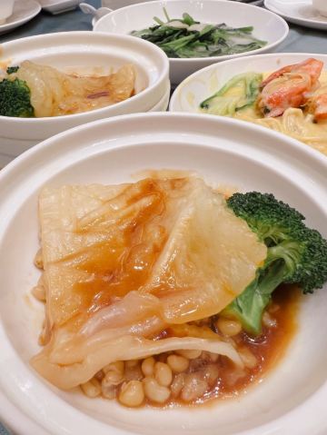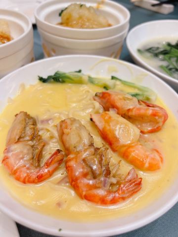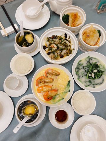 环贸天地ICC开业以来,中午觅食增加很多新选择。已经陆陆续续尝试了几家新店,本周和同事到位于环贸天地3楼的御珍轩喝茶。#新年旅行# #寻味百城# 📍半岛御珍轩酒家(环贸天地店) 👉中市可点菜可饮茶;晚市仅可点菜 🌟装修:酒家采用绿色和金色的搭配,有豪华贵气的感觉,适合商务接待,好友聚会。 🌟菜式:我们想试试更多的品种所以选择了喝茶。凤爪,排骨,肠粉必点,👍没有雷区可以放心的点。喜欢吃甜的推荐半岛红豆糕,软糯清甜,值得推荐。👌芝士糯米鸡味道也很不错。 💰本来以为吃环境的地方价格会很贵,但吃下来4个人9个菜,人均80+,综合环境和服务算是可以接受。