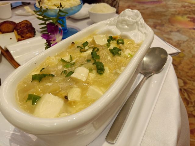 餐厅以广东关西风味菜肴和美味茶点为主打,装潢富丽堂皇,大厅非常宽敞。不论是品尝精品粤菜,还是吃吃下午茶,来这里都是个不错的选择。较受食客欢迎的有唐厨虾饺皇、猪杂粥。