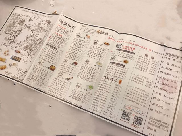 至尊油条,椰汁糕,农家鸡蛋挞,猪杂粥,唐厨虾饺皇,干蒸虾饺皇,鲍汁凤爪,唐厨烧鹅,牛柳炒面,虾饺