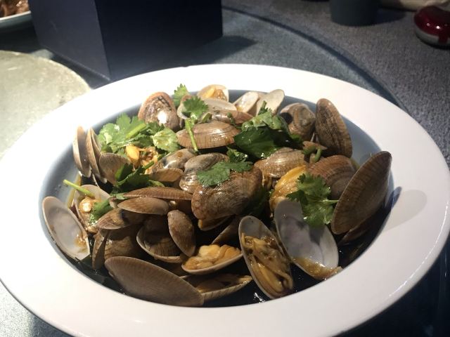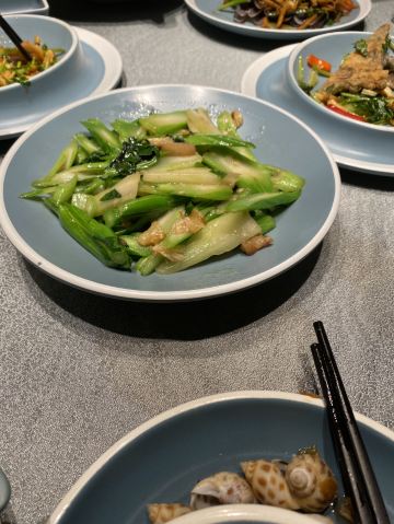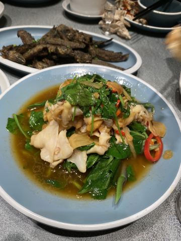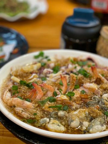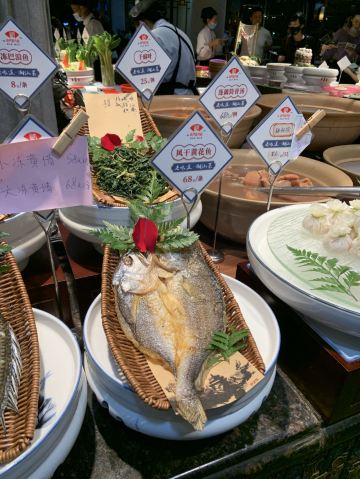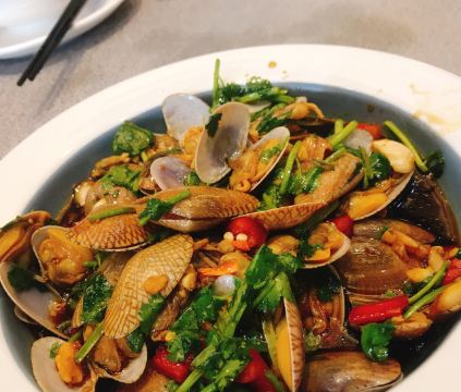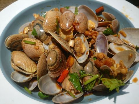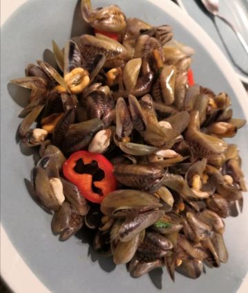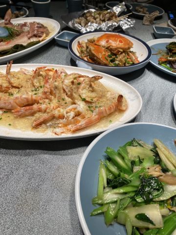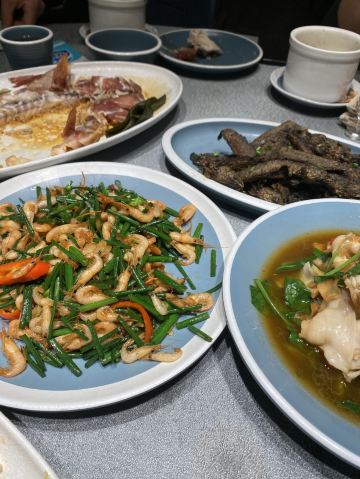凉拌花甲王,香煎蚝仔烙,椒盐九肚鱼,卤水鹅肝,白灼鱿鱼仔,番薯芋头拔丝,墨鱼丸紫菜汤,金不换炒薄壳,九节虾,血蚌,炸果肉,牛肉丸紫菜汤,炒鲜麻叶,豆酱炒通菜,白灼花螺,生腌濑尿虾,砂锅粥,白粥,凉拌海蜇头,笋粿,卤鹅肝,双丸海草汤,姜葱炒花甲,腌虾蛄