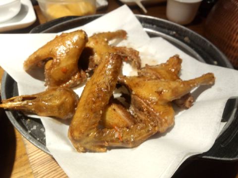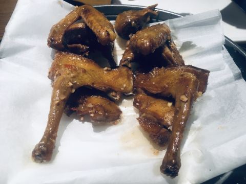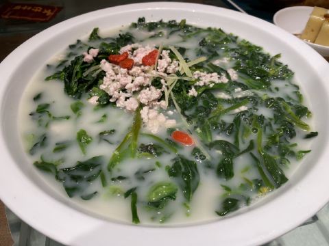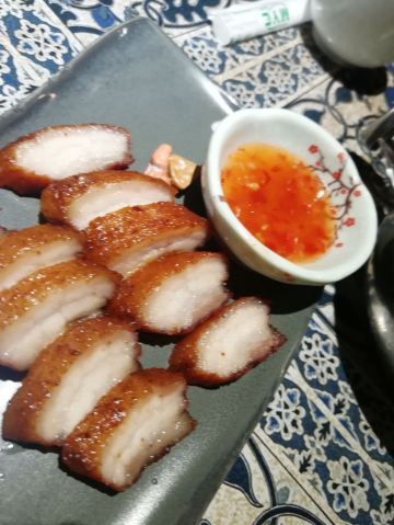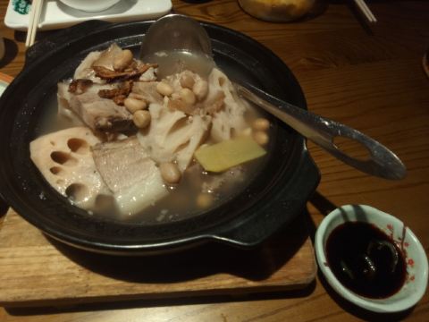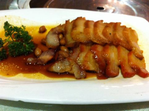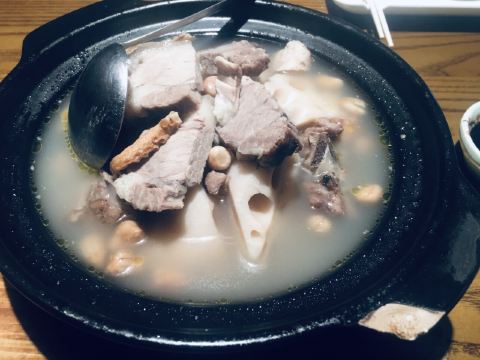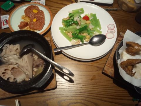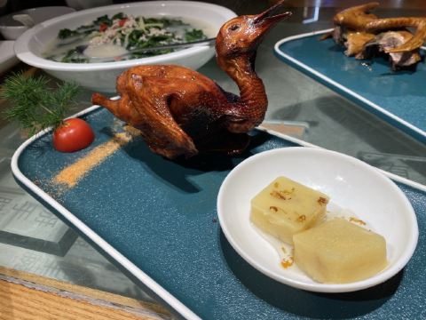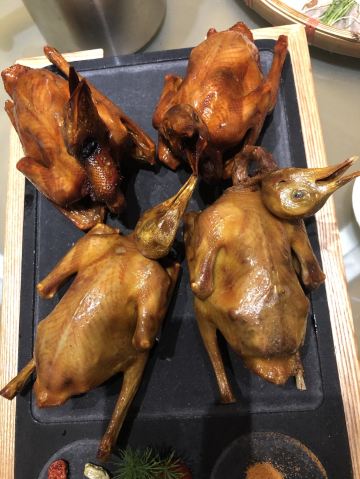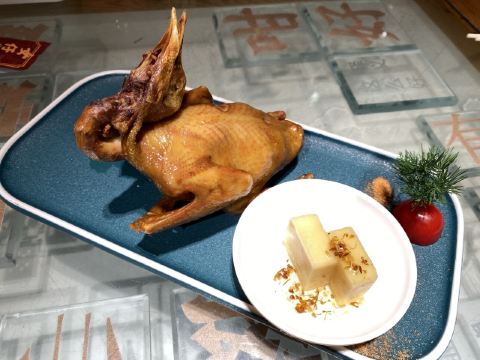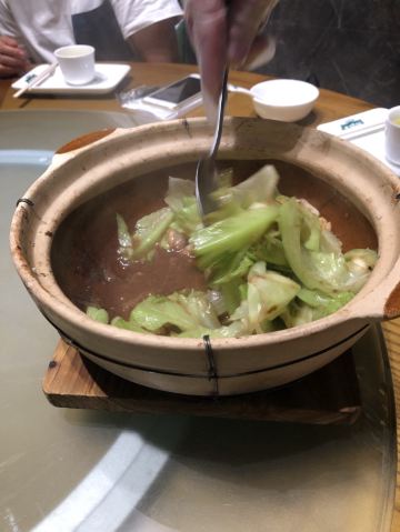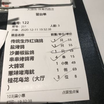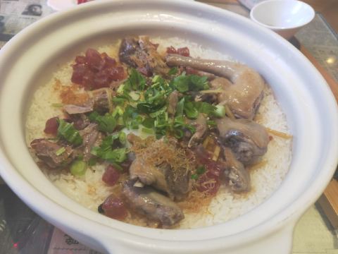 这家总店环境小桥流水,服务员又超级热情下单后20分钟内全部上齐菜品,好有效率~ 「沙姜鸽子」鸽子上菜时已经剪好一块块的了,沙姜挺入味的,味道不错,但个人更爱他们家的「红烧乳鸽」 「洪湖莲藕猪踭煲」这个煲看起来没什么特别,但无论是猪肉、莲藕和汤都好好吃,不爱吃莲藕的都吃了两大块~ 「琥珀清炒碧绿」这个菜摆碟很漂亮,而且各式蔬菜加坚果营养价值非常高~ 「桂花蜜酿莲藕」桂花蜜加莲藕,香香的桂花味,吃起来很消腻,就是两个人的话一碟份量多了些,一般都吃不完~ 「大鸽饭小煲」这锅饭就是大鸽饭的灵魂了,直接电饭锅上,饭和鸽子本身就调好了味,就算什么不加也超级好吃,两人一小煲份量刚刚好~ 「鲜爽乳鸽伴侣」就是马蹄甘蔗水,吃完乳鸽喝这个没那么热气,不错~ 这次体验非常棒,下次再来试试其它的菜式~ p.s.吃饭免费停车三小时喔~