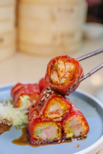 广州新晋出名的一家连锁茶楼,价格实惠,服务热情,是一家性价比很高的餐厅。招牌菜金沙红米肠是必点的茶点,外皮非常Q,里面夹着虾仁和油炸的脆饼,趁热吃口感非常棒。