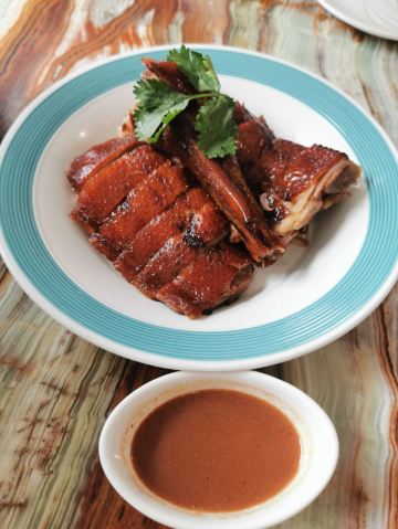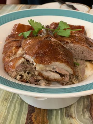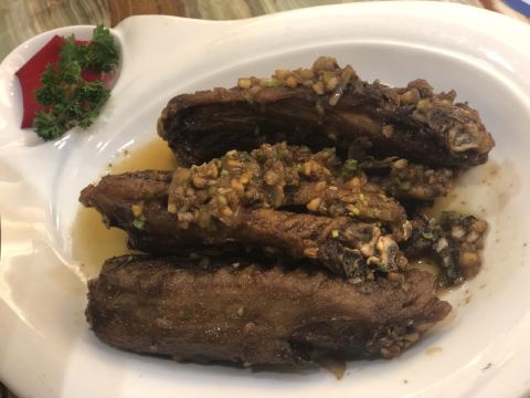 该餐厅的家常菜居多,粤式烧鹅自然是头牌——皮脆肉嫩,蘸酱吃鲜美不腻口,经常明明看着挺肥的,但还是食欲大大。拔丝香芋也不错,甜甜的芋头透着浓郁的奶香,爱甜食的人一定喜欢。环境在当地属上等,服务员很热情。就是太吵了,坐对面说话都要喊,可见生意非一般的火爆。
