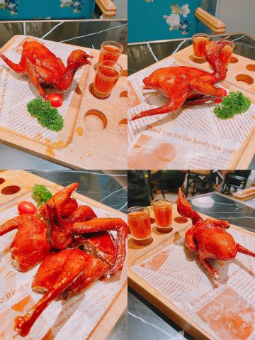 红烧烤乳鸽,菠萝油,乳鸽腊味煲仔饭,椰香鸽子汤,盐焗乳鸽,招牌大鸽饭,甜酱豆腐,有机花菜,椰皇炖老鸽汤,小黄鸭一只