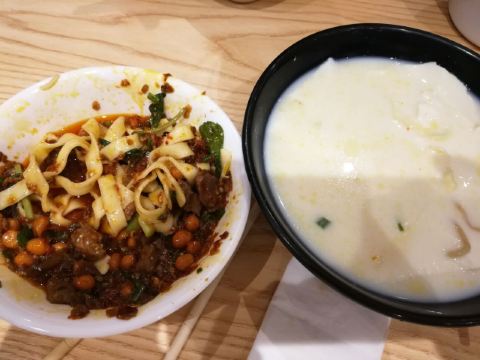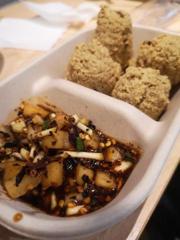 2018年12月31日晚上5点20分左右到的店,早听说豆腐圆子是贵阳市的地方传统小吃美食,而雷家豆腐圆子始创于1874年,距今100多年的历史,所以更加不得不来尝试一下啊。 这家店环境个人觉得还蛮不错的,古色古香的带点贵州当地的特色。 豆腐圆子味道还不错,外面是脆脆的口感,里面还包有葱吧记得,不用蘸水就挺香的,蘸水里面有折耳根,还是不很习惯这个味道,哈哈哈。另外,当时有个新品豆腐干丝,只要3元钱一份,就尝试了一下,入口很有嚼劲的口感,挺干,有点咸,有点辣,个人觉得很适合当下饭菜!
