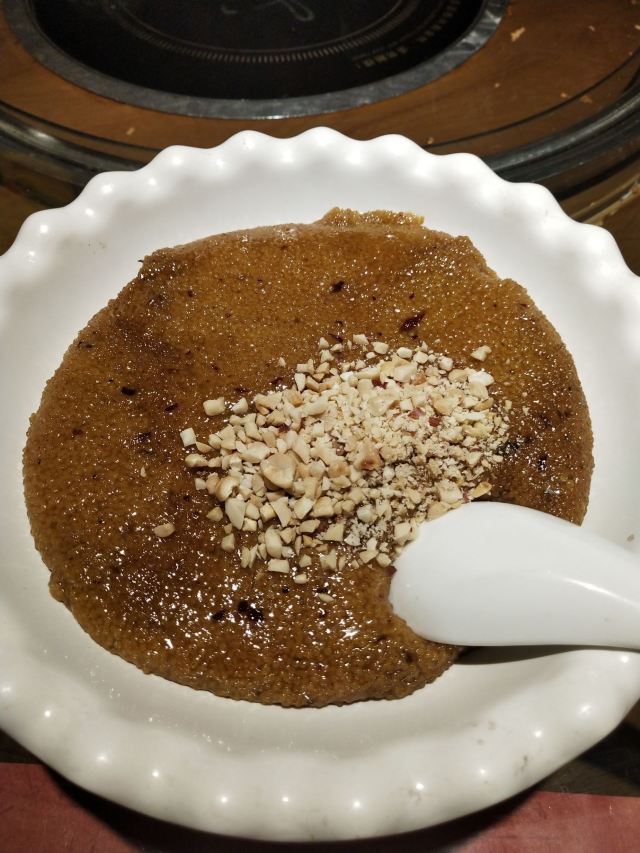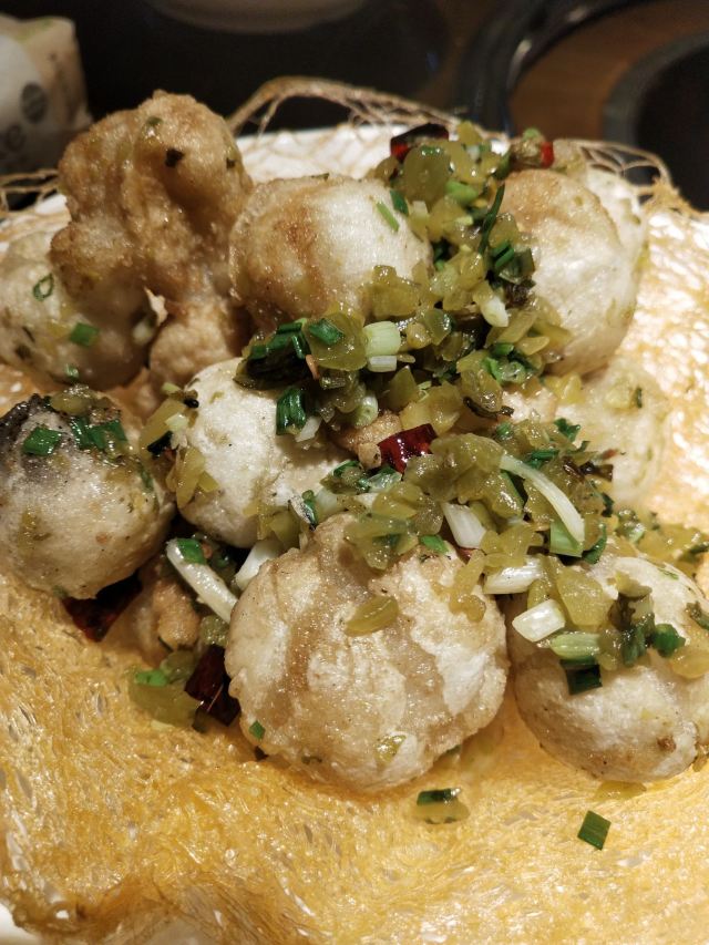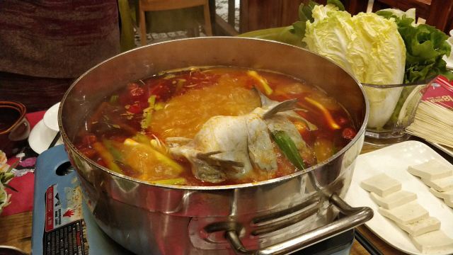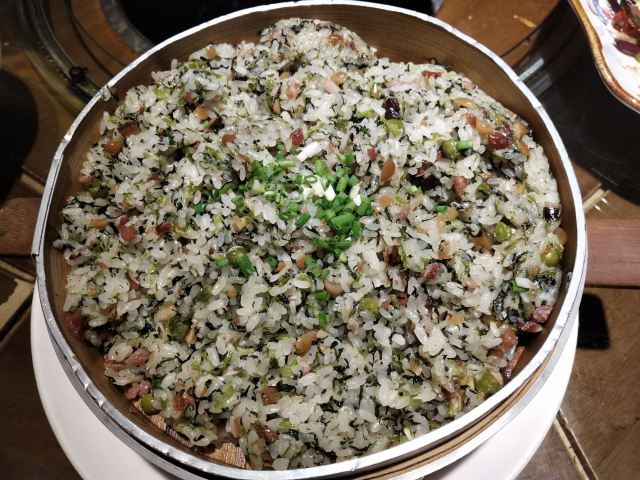 环境很有民族风味,对于吃少数民族特色酸汤鱼来说,在这样的环境下,自然胃口大开。腌鱼、腌肉、侗家三宝都是侗家的风味菜,酸中伴辣、咸中带甜,有的人不一定吃得惯。社饭倒是比较好吃,略油,荞麦炒饭也很不错的。