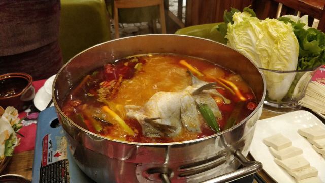 陈中阿姨侗家食府是贵州的一家具有民族特色的连锁酒店,它家最有特色的是酸汤牛肉,酸汤牛肉的汤底是用西红柿汤做锅底,然后用牛肉及各种配料涮着吃,再配上他家的秘制沾料,真的是鲜香糯辣。