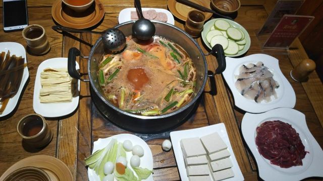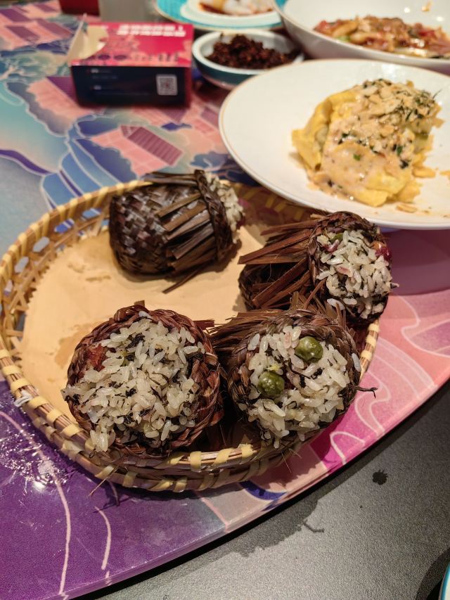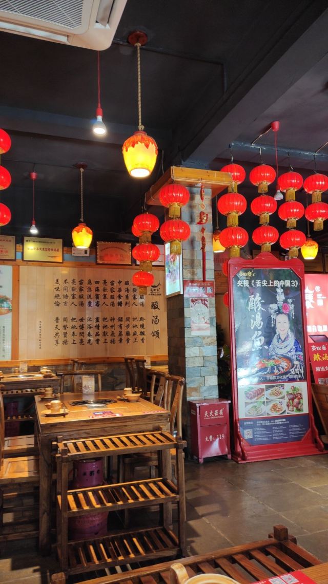 味道不错,点了非遗酸汤鱼,服务员在你面前一道道的把配料放入锅内很有仪式感。环境不错,就在河边,饭店还有电梯,烤鸡味道一般,太硬,亮欢饭,蜂蛹,炒菌子味道不错。