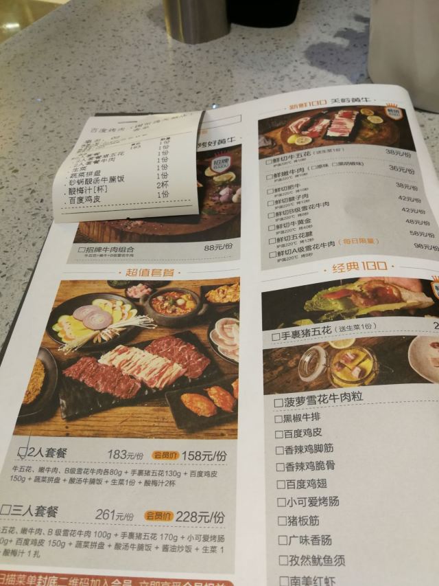 泡椒牛五花,西冷牛排,香辣鸡脆骨,糯香鸡皮,培根金针菇,肥牛金菇卷,芽菜脆哨饭,三人套餐,大份香辣鸡脆骨,老贵阳酱烤脑花