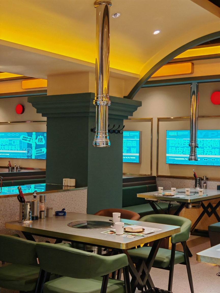 旅游度假绿皮车黑胡椒木炭烤肉店
