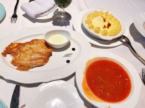 俄式清煎马哈鱼,俄式奶汁鲑鱼,甜土豆泥,自酿红酒,莫斯科红菜汤,拿破仑鹅肝慕斯,罐焖虾仁,罐焖牛肉,格瓦斯,火爆辣鸡香蒜披萨,提拉米苏,俄式猪肉饼,清煎马哈鱼,南瓜汤,黑椒牛扒,红汤,酸黄瓜,法式牛排,鹅肝慕斯,罐羊,罐牛,红鱼籽酱,果木牛小排,奶汁杂拌,红菜汤