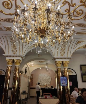 食行天下旅行家华梅是哈尔滨历史最悠久的西餐厅,地处中央大街最繁华的中心地段。这家西餐厅以俄式西餐为主,受欢迎的菜品主要有罐焖牛肉,罐虾,软煎马哈鱼,俄式沙拉,红菜汤等。餐厅的环境是俄式建筑风貌,特别是在二楼就餐能看到漂亮华丽的古典吊灯和天花板装饰,显得金碧辉煌,煜煜生辉,令餐厅增色不少。 菜品总体来说还可以,口味上偏清淡一些,尤其是红菜汤,罐牛和罐虾这几道菜味道都不是很重,应该适合口味偏清淡的人。不过有些菜品的性价比还是不错的,特别是罐牛、罐虾价格都不贵,看着不大的小罐里东西的量却很足,牛肉和虾肉块都不小,做得也比较入味,罐牛的牛肉也比较软嫩。槽子面包很松软,搭配果酱黄油吃起来挺香。煎马哈鱼也不错,马哈鱼没有鱼刺,煎制得很软嫩,吃起来没有腥气味。 总体感觉,他家菜品味道还可以,来这里用餐最主要还是感受一种情怀和情调,同时餐厅名气和环境也是主要的原因。他家门口有外卖,主要就是各种面包,买的人不少,每次路过都是排着长长的队伍。