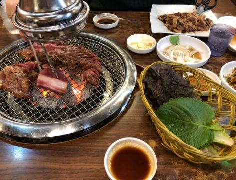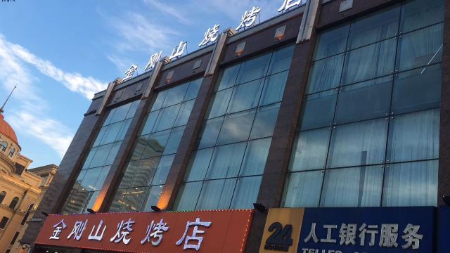 善了哉的网上流传的段子:在东北没有什么是一顿烧烤解决不了的事,如果有,那就两顿。虽是调侃,却足以看到烧烤文化在东北地区的地位。当然,不仅是不同城市的烧烤风格、口味不同,即便是同一城市也是千差万别,俨然分做“菜系”。在哈尔滨,金刚山烧烤着实做成了“网红”烧烤,特别是中山路这家餐厅,随着旅游元素的加入,让人更加印象深刻。店面位置在哈尔滨中心区域,营业面积和装修风格颇具俄罗斯异域风情,初到这里让客人好像来到了一家大型西餐厅。烧烤的食材与烤制完全是明档,区域划分明确,感兴趣的客人可以随时观看拍照,当然口味也是没的说,还秉承了金刚山这个品牌的经营理念,免费的小食和饮品之类的会不间断提供,好像随便点些就能吃饱了。这里不仅外地游客会来体验品尝,就连我们哈尔滨本地人也经常来光顾,唯一的问题就是太火爆了,排队等位是常事,好在深夜营业可以缓解一下压力。绝对值得推荐!