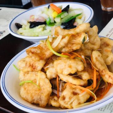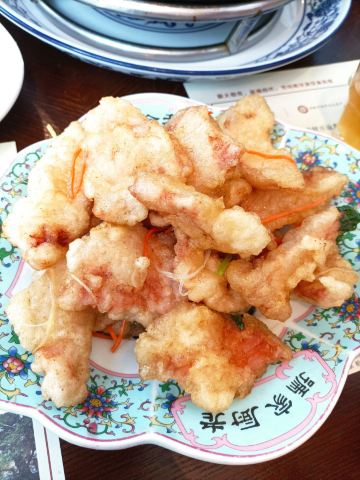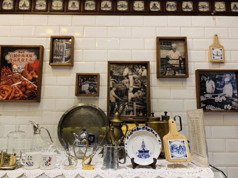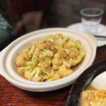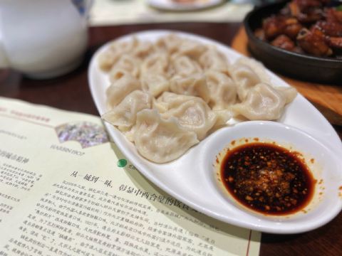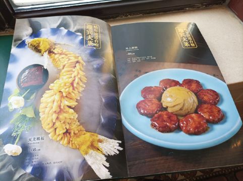 下地铁后,就近随机找了一家百年老店,跑到店门口一看,就能感觉这饭店有点意思了。 看介绍,据说是锅包肉首创的餐厅,虽然最后我们没点锅包肉,哈哈哈。 点了一些其他的特色菜,最喜欢 生靠排骨 微甜口,但又不会像糖醋小排那样特酸甜口,滋味拿捏的正好。 官府豆腐 也推荐,豆腐很香,难得清淡的菜。 干锅有机花菜 有点硬,花菜比较脆,而且就一白瓷盘端上来,和干锅没啥多大干系了[得意] 东北风味酸菜水饺 也点了一份,她家还有其他口味特别的水饺,但就想尝尝酸菜,很爽口。 [薄荷]环境: 比较古色古香,又夹杂了一点民国风,但是有苍蝇飞来飞去,很烦。 [服务铃]服务: 是能体验到服务的餐厅了,点个赞。 看隔壁桌反映了苍蝇的问题,小哥致歉后一直拿着拍子卖力地拍[笑哭]