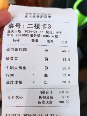老厨家是哈尔滨的一家做东北菜的老店了,已经有四代传人,在哈尔滨市有很多家分店!室内设计是有着古色古香的中国味道!锅包肉还是老式经典味道,那么的好吃,大拉皮也是那样的可口!地三鲜也是东北菜的经典!水爆肚的味道不错,就是菜码太小了!山东丸子汤做的太一般了,没有以前的味道,并且很咸!总体来说,锅包肉一直都是那个味道,其他的菜品,有的不如以前了!