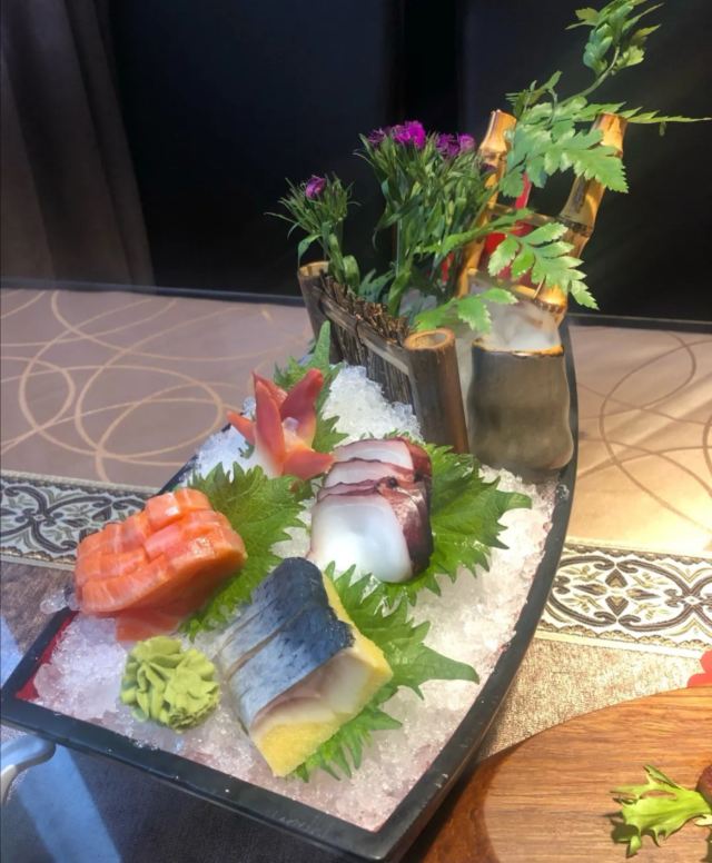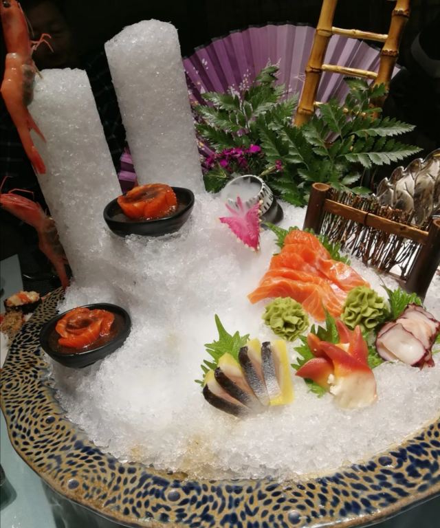鹅肝,盐烤大明虾,佛跳墙,刺身,蒲烧鳗鱼,扇贝,葱烧海参,三文鱼刺身,蟹宝起司烧,鲍鱼,雪蟹腿