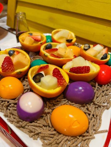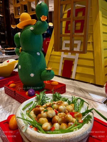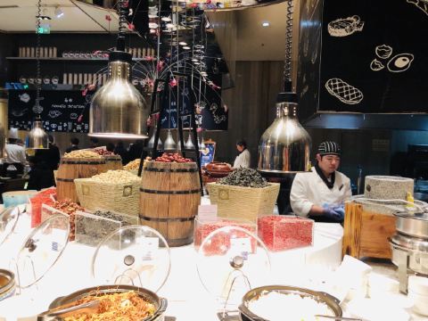 【口味】菜品丰富,还有小火锅的加持,羊肉串超级赞哦!会按照不同节日举办主题活动。这次还组织小朋友认养小萌兔,太有爱啦。 【环境】餐厅布局合理,取餐方便,灯光氛围浪漫时尚,拍照很美哦 【服务】服务周到热情。