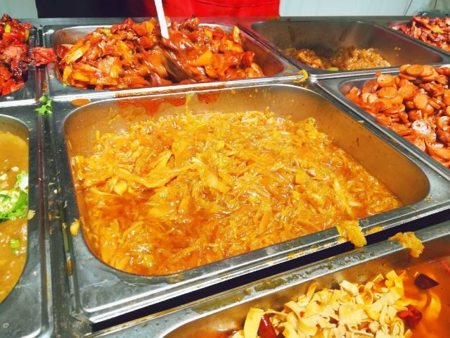 奥尔良炸鸡腿,番茄炒蛋,地三鲜,炖豆角,酸菜粉,鱼香肉丝,红烧日本豆腐,孜然火腿,凉菜,东北扒肉,鸡腿,辣子鸡,溜肉段,扒肉,尖椒鸡蛋,炒火腿肠