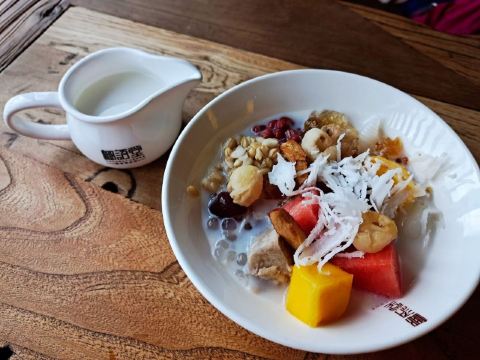 清补凉是海南的第一甜品,有点类似福建的四果汤、石花膏,大街小巷都有卖,不过象“揶语堂”这样有高颜值、好口感的店确实也是不多。 在骑楼老街偶遇“揶语堂”,点了几个招牌菜品,味道都不错,而且都有冰的和热的两种选择,当然价格也是略贵一点。[调皮]