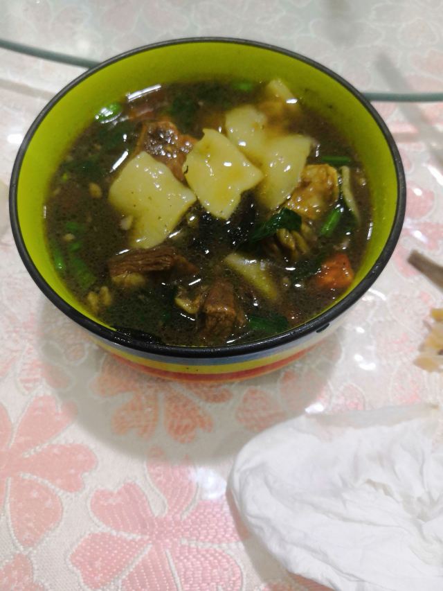 哈密大碗汤饭(NO.1)在哈密是迎宾路上,临近建国南路,是一家小饭馆,做的汤饭简单、羊肉很多,面片劲道,味道鲜美,价格也实惠,推荐去品尝。