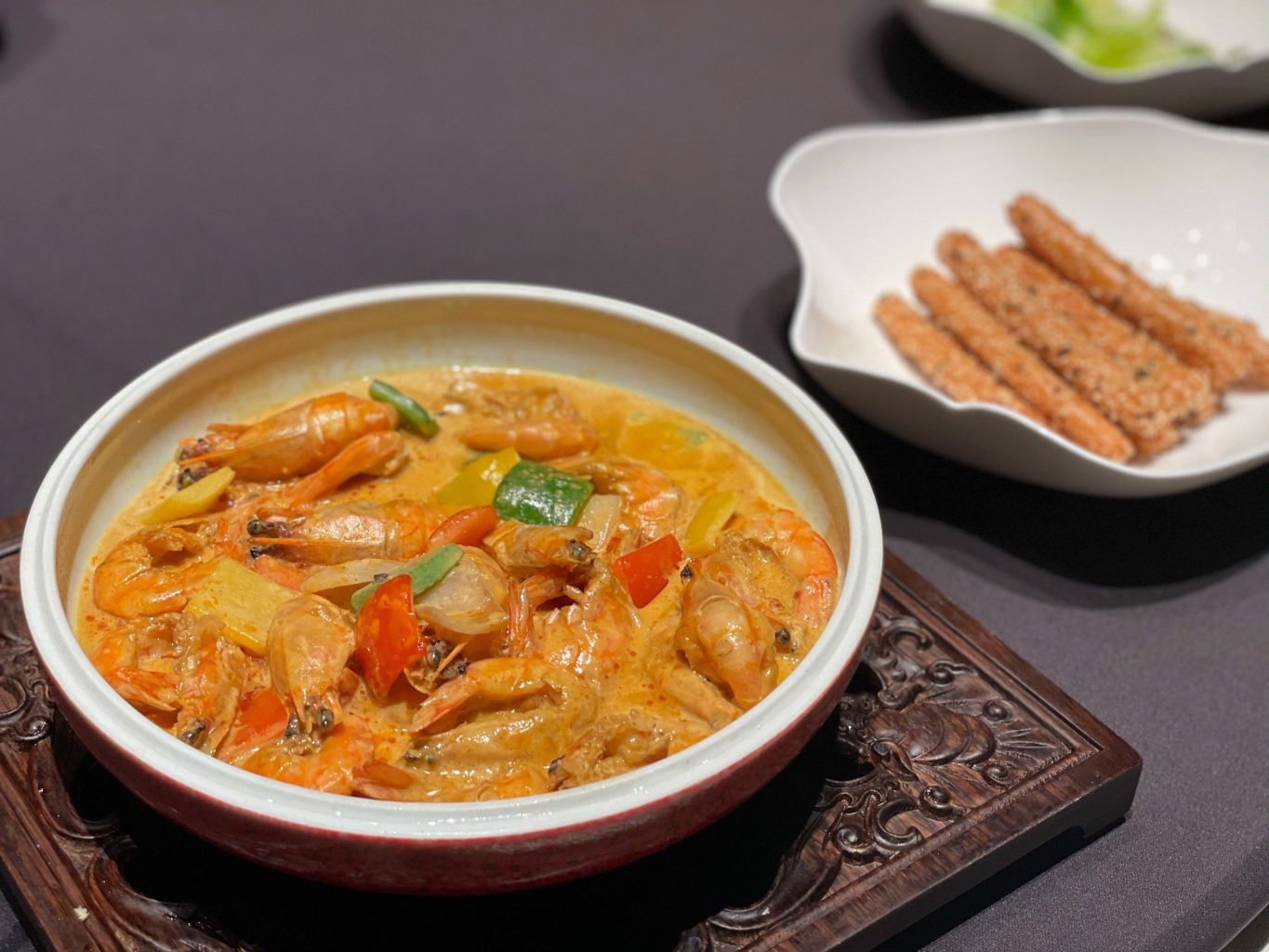 黄桥烧饼,脆皮乳鸽,虾饺皇,椰香燕窝,拆鱼羹,桃胶双皮奶,秘制石锅鳕鱼,黑醋汁松板肉,港式咖喱虾,波龙豆面