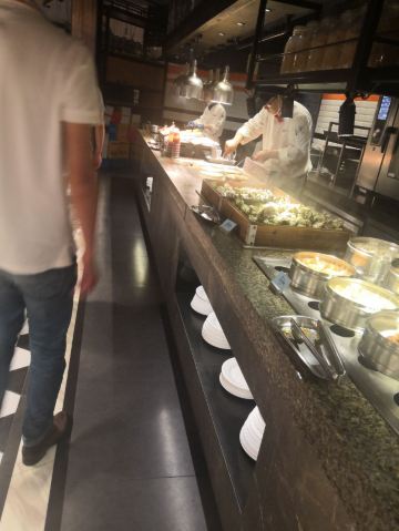 人均:120左右 被家里人带来吃自助餐,本来就吃不了多少啦,而且还不太喜欢海鲜的我坐着很折磨。吃了好多冰激凌 如果你有一个吃不饱的胃,而且你特别喜欢吃海鲜还是可以推荐的。好多蛤蜊,生蚝,大虾,龙虾,还有煎牛排,一些三文鱼之类的,还有很多酒类。有烤鸭叉烧,各种面条,还有五谷杂粮。