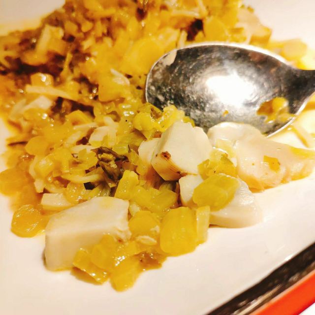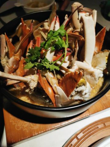 位置挺好找的,小鹏汽车旁边的电梯下来就是。 杭甬第一鲜真的是鲜,本来以为是疙瘩汤呢,结果发现是那么好吃的海鲜~大赞。 蒸蟹的蟹很新鲜,很多桌都点。但是酱汁偏淡,全程吃的是水煮蟹。花螺里的核桃不太好吃。 葱油扇贝个头很大。 鱼饼一般般。 炒粉丝平淡无奇。 服务生很热情,需要充电也帮忙充了。