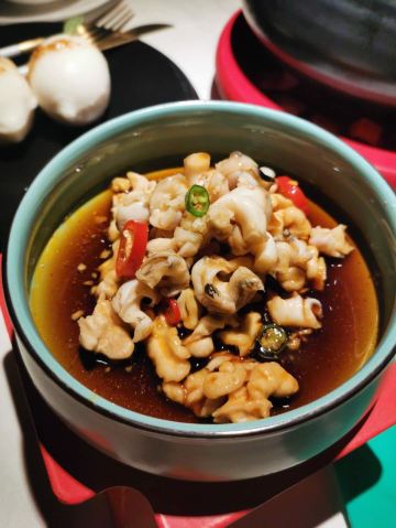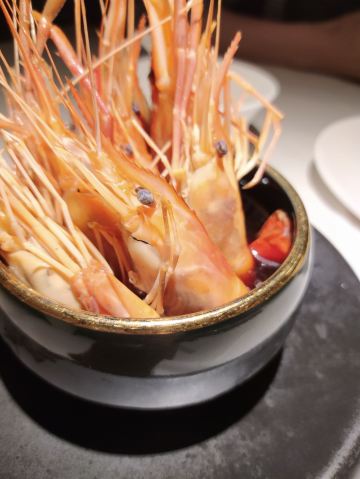 杭州吃货小e【小e美食探店】宁波风味小海鲜 杭越小鲜(来福士中心店) 地址:杭州市江干区新业路228号来福士广场B1层 营业时间:10:30~14:00,16:30~21:00 【环境】这家店在来福士负一楼,算是这一层中装修和面积最大的一家餐厅了,客流量也是比较多的,有散台也有包厢,比较适合约会或者家庭聚餐,以宁波菜和杭帮菜式为主! |十里花雕醉甜虾^68RMB,用的是沼虾而非甜虾,熟醉而成,但是味道出奇的淡,就只有一点点的酒味而且咸度也是不够的,感觉醉的时间还不够,不太好吃! |特色卤大肠^58RMB,特色的杭帮卤大肠的口味,肥肠油润搭配酱汁更入味,适合配饭的一道冷菜! |海苔海龙鱼^58RMB,豆腐鱼裹上了面糊以及海苔末干炸后复炸而成,口感酥香,不过味道偏淡基本没有咸味,建议旁边搭配一小碟酱汁或者椒盐会更好! |生腌血蛤^48RMB,血蛤是宁波、温州一带比较喜欢的贝类,因体液颜色鲜红如血故名“血蛤”,只用热水汆烫十来秒就可以食用,不过和温州的姜酒血蛤做法相比,他家的生腌酱汁有点太过寡淡,提升不了血蛤本身的鲜美! |杭越鲜肉包^20RMB,一笼有三个包子,用土猪肉作为肉馅,在他们家这个点心算是比较热卖的,肉馅还算是挺多的,包子皮也是松软,基本8点不到就售罄了! |象山麻糍^20RMB,这是一道象山传统名小吃,将野草汁挤入糯米捣至年糕状,然后进行炸制撒上红糖粉,不过他们家炸的有点太硬了,搭配红糖粉显得更干,如果搭配红糖浆口感会更好一些! 【服务】店员服务态度还是比较不错的! 【人均】180RMB 推荐指数🌟🌟🌟⭐