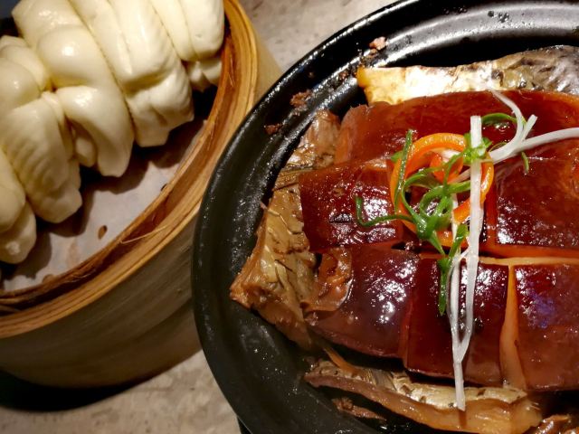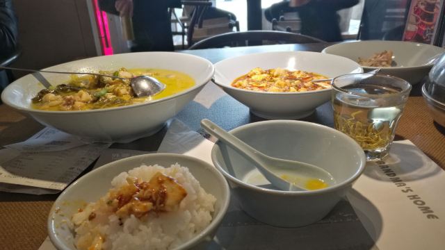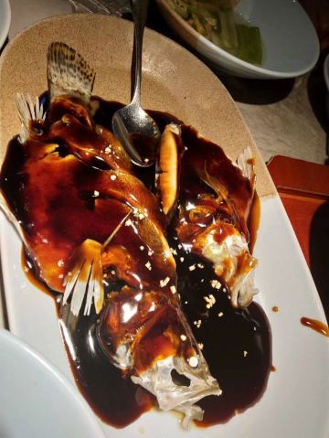 候鸟的梦想到杭州的第一顿饭还是选择了外婆家,这个在京城要排队等饭的店,在本土的杭州也是很热门的菜馆。 餐馆就在大华酒店旁边的食街,店面临街,在落地玻璃景观位用餐很舒适。 本地人说外婆家的菜是以家常味道和价格优势占领市场。 西湖酥鱼~比起上海酥鱼,表皮更加酥脆,咬破酥皮,浓香的酱汁随即入口,下酒好菜。 龙井虾仁~必吃菜。虾仁虽小但粒粒饱满Q弹,口味清淡。 外婆红烧肉~腊鱼和五花肉蒸制。做法独特但丝毫吃不出鱼腥。用荷叶蒸饼夹着吃饱腹感倍增。菜品偏咸。 宋嫂鱼羹~比起西湖醋鱼和叫花鸡,宋嫂鱼羹是杭帮菜给我留下印象更深刻。虽然现在的鱼羹已然没了那么丰富的材料,但在寒气袭人的冬天里喝上一碗热乎乎的汤很暖心。 提个小建议~餐具真心该换换颜色。