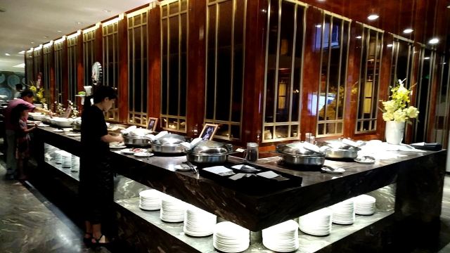 该餐厅位于大酒店四楼,环境优雅整洁,餐厅尤其是自助早餐和自助晚餐,绝对是价廉物美,菜肴品种丰富,新鲜,色香味俱全。领班王飞跃和实习生服务员张慧玲对顾客态度和蔼可亲,服务到位,主动积极。值得点赞!