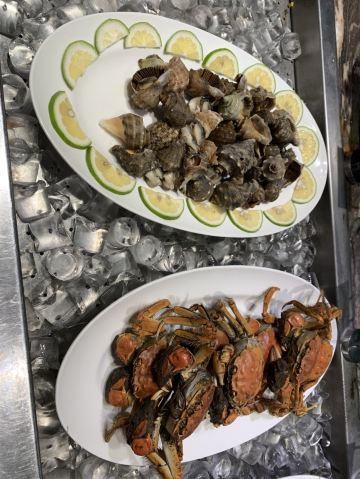 铁板牛排,烤鸭,小龙虾,虾,大闸蟹,三文鱼