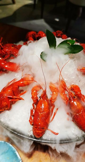 八月的火柴1DP爸爸带我飞,2019年年会券走起来-61。 大佬们天天说鲜与鲜寻的小龙虾和蟹好,忍不住杀了过去,同事还拒绝了BOSS的邀约,和我一起走,看来小龙虾的魅力真是无穷啊! 👣位置:黄龙万科中心H座1楼。(不在黄龙万科K-Lab商场里哦!) 🚘交通:本月推荐用T3C打车出行,所有以万科为起点或终点的行程,都有减免车费,哇哈哈! 中午的生意超好,我们落座后赶紧点单,好在上菜很快。 |熟醉湖蟹^超级赞!店员帮我们一切两半,蟹膏抑制不住的暴露出来,橙红的蟹膏入口微甜,酒香四溢。 |冰镇小龙虾(4.28上市)^也是花雕醉的,不得不给它一个大大的100分。艳红色的小龙虾趴在白色的冰山上,拿到手上还是微凉,虾肉饱满且紧实,花雕的甜香和糖份的甜让小龙虾的口味又上升了一层。一份十只,不知道是不是酒的作用,吃了几只竟然饱了,也足见小龙虾的壮实。 |捞汁一网鲜^味道还是不错的,就是有点咸。明虾、钉螺和八爪鱼都还蛮新鲜的,下饭不错。 |牛肉炒饭^好吃,饭粒粒分明,粒粒入味,一盆竟然被我们吃完了。 |清炒茼蒿^超级推荐,这家的茼蒿很新鲜,炒得也清爽,吃过了重口的菜用这调节一下,满口舒爽。 回公司的路上,同事就在约下一局了,看来是爱上这里的小龙虾了。