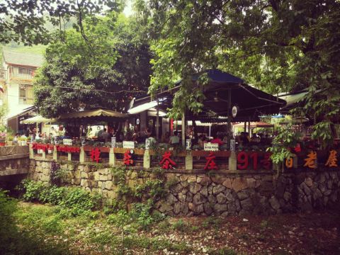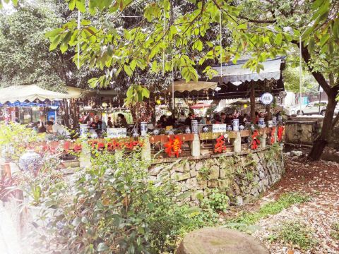 平安夜的蚊子店名:樟乐茶庄 地址:梅家坞91号 交通:公交103路 梅家坞 营业时间:9:00-21:00 人均消费:120元 [薄荷]环境: 樟乐茶庄主人,在梅家坞拥有一片茶园,于是樟乐茶庄,依山傍水而建,不负这番山水好风光。 客人来了,热情递上自家龙井茶,烹制农家菜。 老字号茶庄,历史悠久,文化底蕴深厚。 在凉凉的深秋,与好友一起,共赴樟乐茶庄。 告别了城市喧嚣,松开了紧锁的眉头,呼吸着梅家坞的芬芳。小桥流水,空气清新,翠绿嫣然,生机勃勃。风景如诗如画,大自然恩赐的宝藏。 沿着溪水,穿越小桥,来到樟乐茶庄,植被包围,木屋小楼,古色古香。青瓷元素,贯穿全场,青瓷灯饰、花瓶装饰、桌布餐具等,温婉秀美,江南韵味。 周末中午时分,露天和室内座位,几乎全部爆满,人气超旺,不愧是老字号。家人朋友聚会,吃饭喝茶,打牌聊天,其乐融融。亲切的杭州乡音弥漫,在山水秋色之间,龙井茶香缭绕。杭州人知足常乐的,就是享受这般惬意的慢生活。 [服务铃]服务: 好久不见,老板热情好客,笑容洋溢,一眼就认出了我,记忆力简直爆表!为我们送上瓜子,我们不能吃辣,特别祝福厨房做成不辣。就好像是去朋友家做客一般。服务员阿姨态度也是超级棒,有求必应,礼貌道别。发自肺腑的真诚,深秋温暖着我们的心田。 |石锅石鸡(蛙)^石锅热气腾腾,冒着热乎气,汤咸香浓郁,石娃皮脆肉香,喝着汤吃着蛙,暖身又养生。 |干菜鱼钩^来自钱塘江的鱼,自家梅干菜精心烹制,梅干菜香,渗透入味,鱼肉无刺,细嫩鲜香。 |茶叶仔排^金黄酥脆,外酥里嫩,淡淡茶香,油而不腻。大块仔排,吃的过瘾! |白花豆腐^颜值担当,独具匠心。嫩白的豆腐包裹着新鲜肉丸子,细腻鲜美,唇齿留香。 |龙井宴球^奶白色的汤,漂浮着颗颗龙井“宴球”,银耳包裹鱼肉丸子,造型精美,Q弹爽滑。鲜香之余,回味无穷。 樟乐茶庄,山水秋色,龙井茶香。 好友欢聚,美食齐享,共话家常。