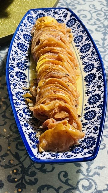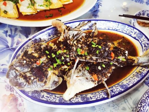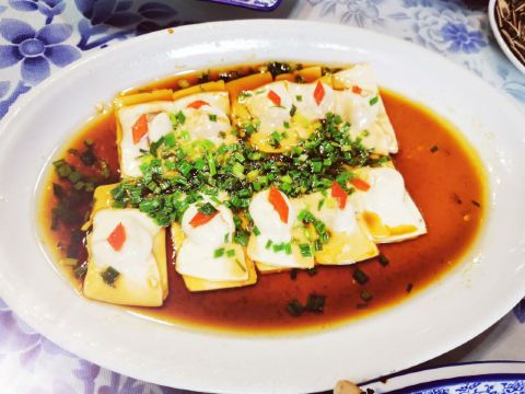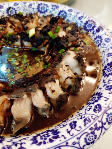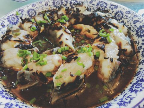 伊來紧张忙碌的一天,大脑在各种博弈中高速运转精疲力尽,结束后寻个安静去处喝上几杯放松放松。杭州虽然发展奇快,但毕竟是江南慢生活的底子,龙井村的幽僻更是无人能及。 樟乐茶庄的店招仿佛水浒传中的酒肆,更妙门前有小溪环绕,屋外的排挡霓虹初上,一派安静祥和的旖旎。 「干菜蒸鳗鱼」 鳗鱼出现在中餐桌上就很奇异,干菜跟他搭档,这个地位就有了天壤之别但气场却丝毫不逊 我先夹起油亮的干菜放进嘴里 软烂咸鲜夺走了鳗鱼的灵气 再夹块鳗鱼肉一口闷 肉质鲜美,脂膏丰膄 细腻却不失嚼劲,回味还有些许甜腻 这份肥美不能辜负了大米饭 于是我左一口米饭右一口鳗鱼开始风卷残云 半路吃得兴起,连鱼汤都不愿放弃 蒯起来浇入碗里,把米饭扒拉干净 “喔~” 发自灵魂的过瘾! 美好的夜晚推杯换盏,但也别忘记好好吃饭~