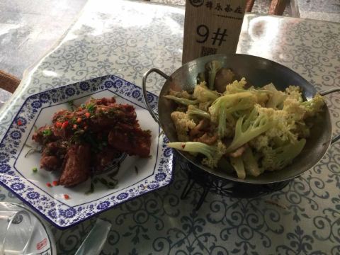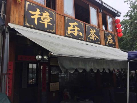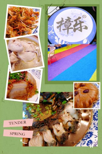 Zhanglechazhuang·qingci店名:樟乐茶庄 地址:梅家坞91号 交通:公交103路 梅家坞 营业时间:9:00-21:00 人均消费:120元 [薄荷]环境: 樟乐茶庄主人,在梅家坞拥有一片茶园,于是樟乐茶庄,依山傍水而建,不负这番山水好风光。 客人来了,热情递上自家龙井茶,烹制农家菜。 老字号茶庄,历史悠久,文化底蕴深厚。 在凉凉的深秋,与好友一起,共赴樟乐茶庄。 告别了城市喧嚣,松开了紧锁的眉头,呼吸着梅家坞的芬芳。小桥流水,空气清新,翠绿嫣然,生机勃勃。风景如诗如画,大自然恩赐的宝藏。 沿着溪水,穿越小桥,来到樟乐茶庄,植被包围,木屋小楼,古色古香。青瓷元素,贯穿全场,青瓷灯饰、花瓶装饰、桌布餐具等,温婉秀美,江南韵味。 周末中午时分,露天和室内座位,几乎全部爆满,人气超旺,不愧是老字号。家人朋友聚会,吃饭喝茶,打牌聊天,其乐融融。亲切的杭州乡音弥漫,在山水秋色之间,龙井茶香缭绕。杭州人知足常乐的,就是享受这般惬意的慢生活。 [服务铃]服务: 好久不见,老板热情好客,笑容洋溢,一眼就认出了我,记忆力简直爆表!为我们送上瓜子,我们不能吃辣,特别祝福厨房做成不辣。就好像是去朋友家做客一般。服务员阿姨态度也是超级棒,有求必应,礼貌道别。发自肺腑的真诚,深秋温暖着我们的心田。 |石锅石鸡(蛙)^石锅热气腾腾,冒着热乎气,汤咸香浓郁,石娃皮脆肉香,喝着汤吃着蛙,暖身又养生。 |干菜鱼钩^来自钱塘江的鱼,自家梅干菜精心烹制,梅干菜香,渗透入味,鱼肉无刺,细嫩鲜香。 |茶叶仔排^金黄酥脆,外酥里嫩,淡淡茶香,油而不腻。大块仔排,吃的过瘾! |白花豆腐^颜值担当,独具匠心。嫩白的豆腐包裹着新鲜肉丸子,细腻鲜美,唇齿留香。 |龙井宴球^奶白色的汤,漂浮着颗颗龙井“宴球”,银耳包裹鱼肉丸子,造型精美,Q弹爽滑。鲜香之余,回味无穷。 樟乐茶庄,山水秋色,龙井茶香。 好友欢聚,美食齐享,共话家常。