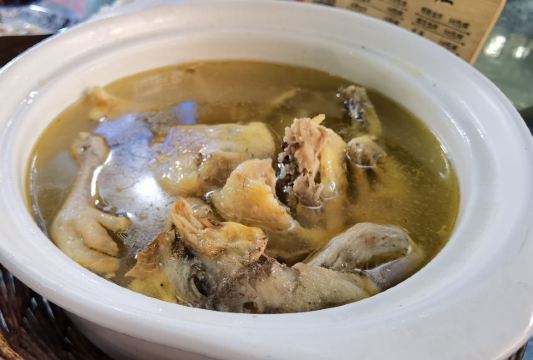 椿姑娘在路上#蕾食札记# 来杭州一定要去梅家坞 十里山道梅家坞 茶景伴君一路行 温州的朋友来杭州 相约去梅家坞 喝喝茶、聊聊天、打打牌 吃点原汁原味的农家菜想想就惬意 ———————— ◤坐标◢梅家坞公交车站对面 ◤环境&特点◢青山绵绵、溪涧潺潺、茶园蓬勃,樟乐茶庄就在梅家坞的正中间。 ¥◤价位◢人均200 ———————— ▷「龙井茶」★★★★★ 是今年的新茶,用玻璃杯泡出来,可以看清楚茶在水中被浸润,飘落的美妙过程。夏日的午后来一杯龙井茶,有清热避暑的功效。 ▷「本鸡煲」★★★★★ 本鸡煲里加了人参,经足火与浓郁的汤汁,一道“本鸡煲”就高调上桌了,齿感劲道,汤汁醇厚,食毕只觉两颊生津,整日回味不绝。 ▷「茶香仔排」★★★★★ 茶与美食是一对璧人,相搭古朴生香,清幽致雅 ,也是一种生活中的情趣。茶香辅佐仔排的肉味儿,清爽利落,可佐味碟,外焦里嫩茶香袭人。 ▷「干菜鳗鱼」★★★★ 江鳗的肉质很细嫩,鱼肉很肥美,加上杭州梅干菜特有的香味和咸鲜味,蘸着汁吃,鲜嫩好吃!